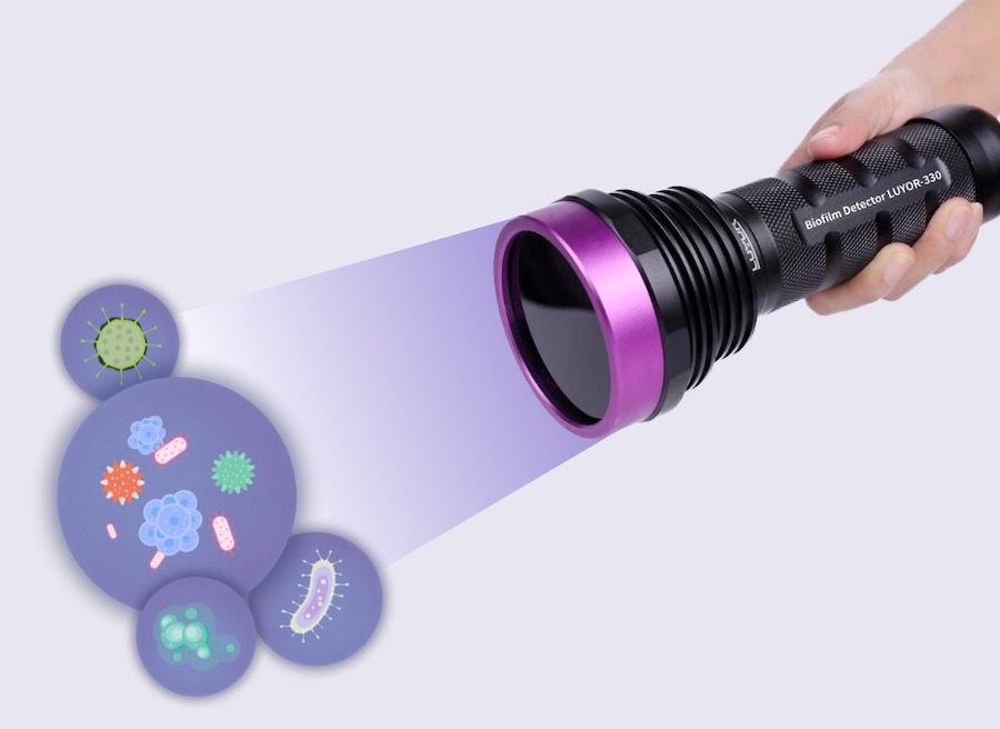 The Biofilm Detection Flashlight LUYOR-330 detects various bacteria and microorganisms associated with potential biofilm risks.
